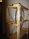 The first picture shows the flexibel tube, filled with concrete, used as counter-weight for the magnets. The second picture shows the 'big' magnets. Then the complete wheel as Calloway desribed it. Just a little bit smaller. But is is not turning more then 300 degrees. Not with one, two or even more stator magnets. I'm will take the whole thing apart and try to mount one magnet at the time. I must try to get a movement which accelerates. I which that Calloway had made a picture of his 'working' model.