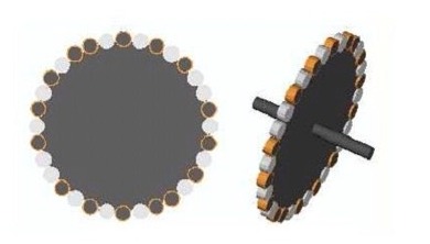 would have every other disk surrounded by copper alternately. But, the magnets would