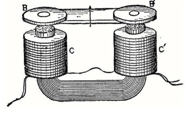 the coil, C, a continuous current passes from one commutator brush to the other, and it will energize electro
