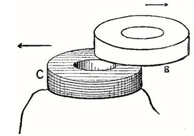 the disk in the hand and bringing it down forcibly toward the magnet. In attempting to raise the disk
