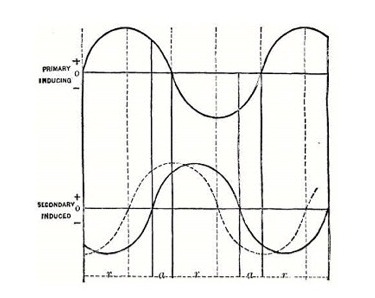 from the zero of the primary or inducing current to the succeeding zero of the secondary or induced current;